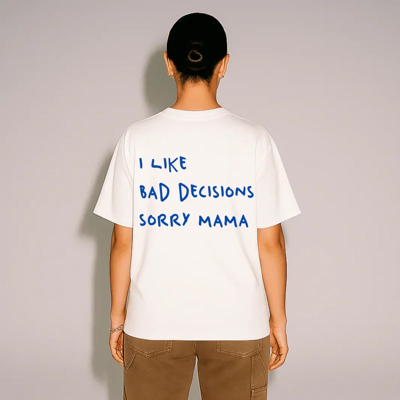 Cotone pettinato da 190 g/m², fit oversize e anima ribelle. Una maglia che parla per te anche quando tu stai zitto a fissare il vuoto. Cuciture forti: non crolla nemmeno dopo la tua playlist triste su repeat.